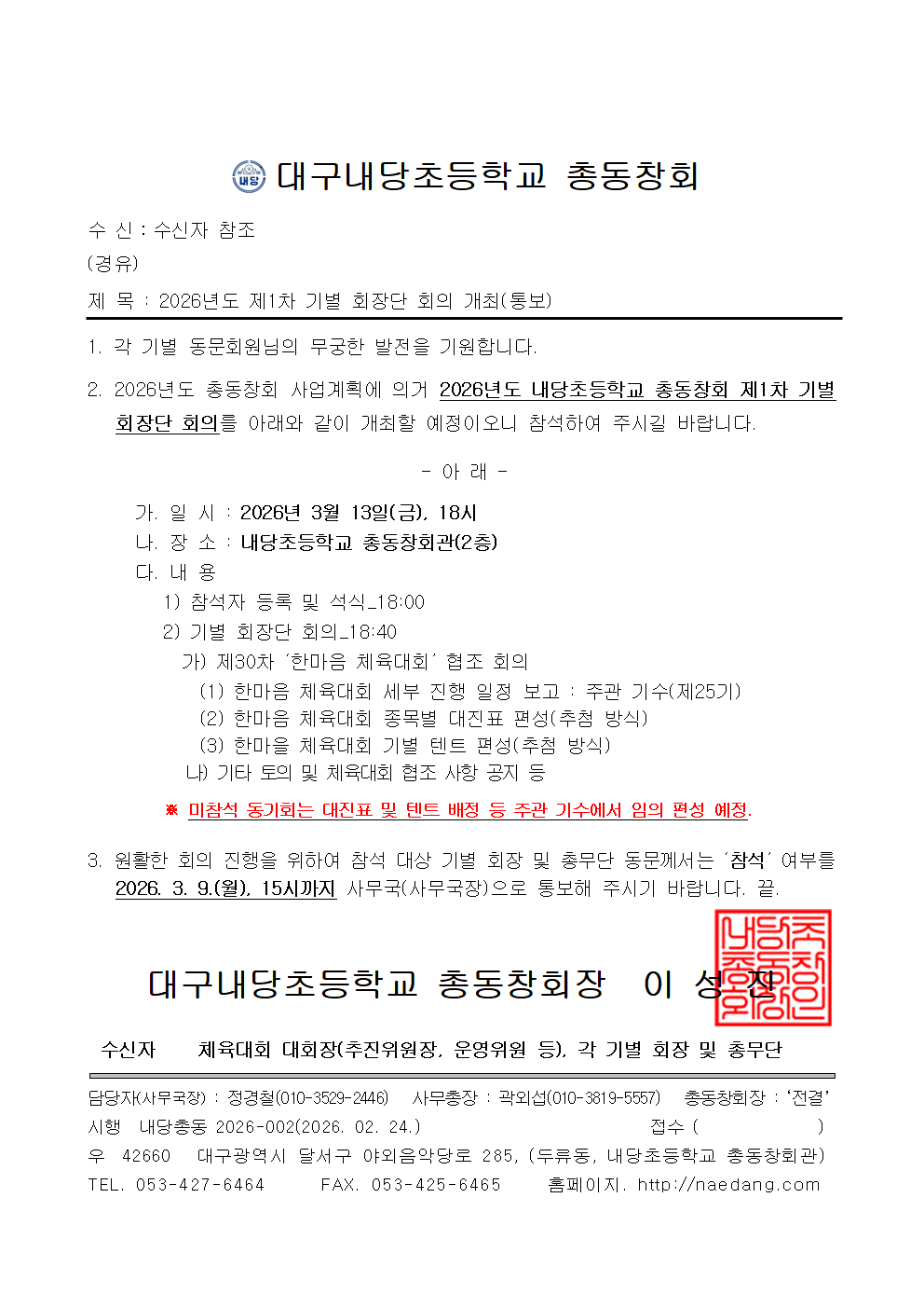 2026³âµµ Ãѵ¿Ã¢È¸ ¿¬°£°èȹǥ